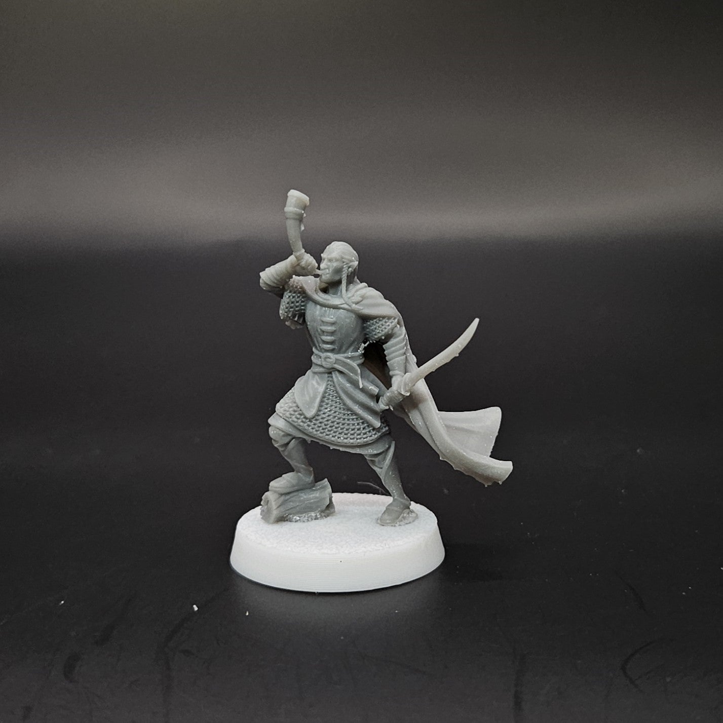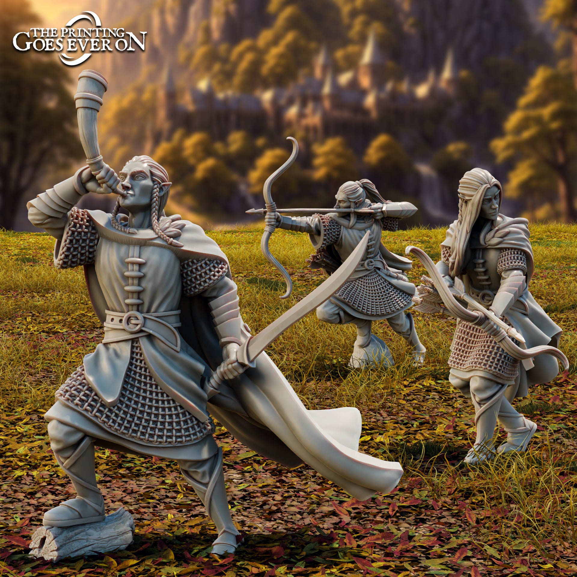 5 guerreros elfos de Brightwood impresos a escala de 28 mm en resina, perfectos para un determinado escenario de fantasía que sigue a 9 aventureros en una búsqueda para destruir un poderoso anillo mágico.