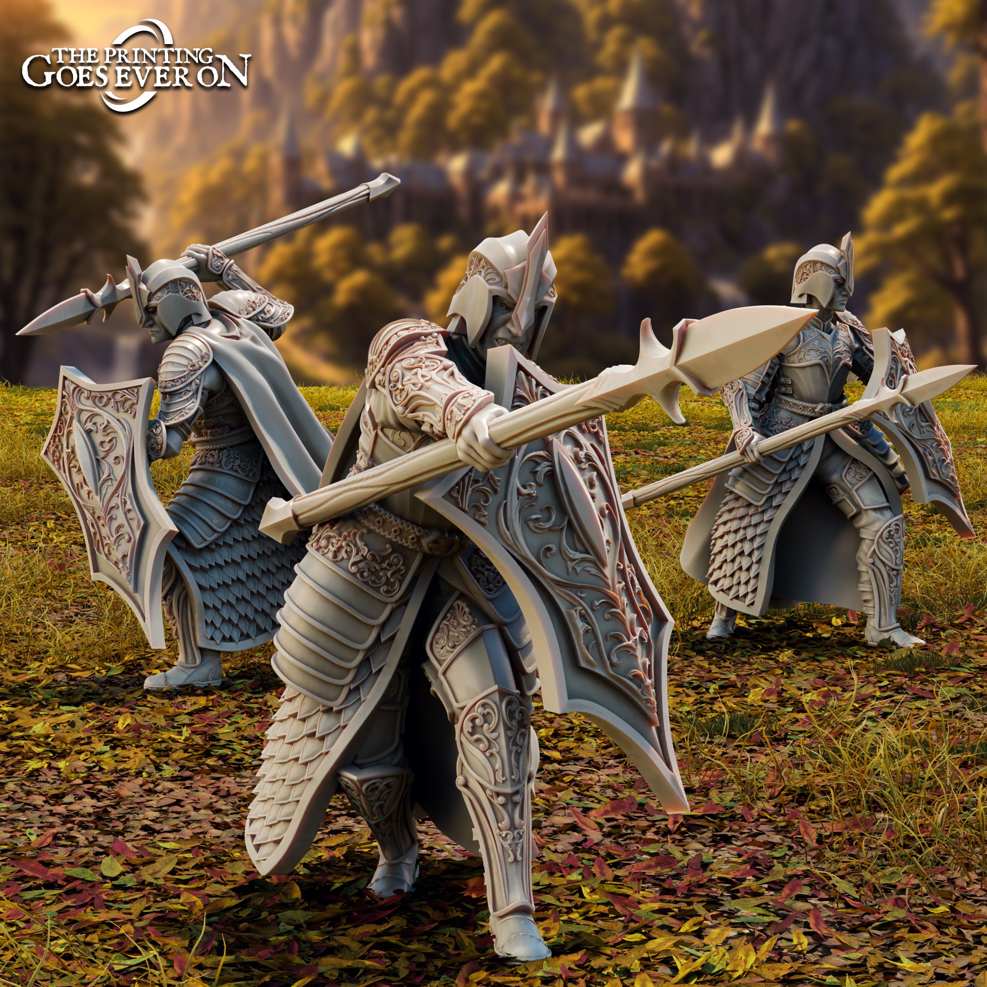 5 guerreros elfos de Brightwood impresos a escala de 28 mm en resina, perfectos para un determinado escenario de fantasía que sigue a 9 aventureros en una búsqueda para destruir un poderoso anillo mágico.