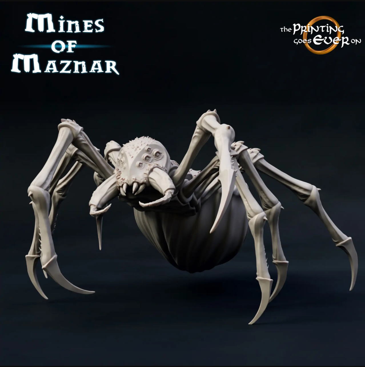 2 Arañas Gigantes impresas a escala de 28 mm en resina, perfectas para un determinado escenario de fantasía que sigue a 9 aventureros en una búsqueda para destruir un poderoso anillo mágico.