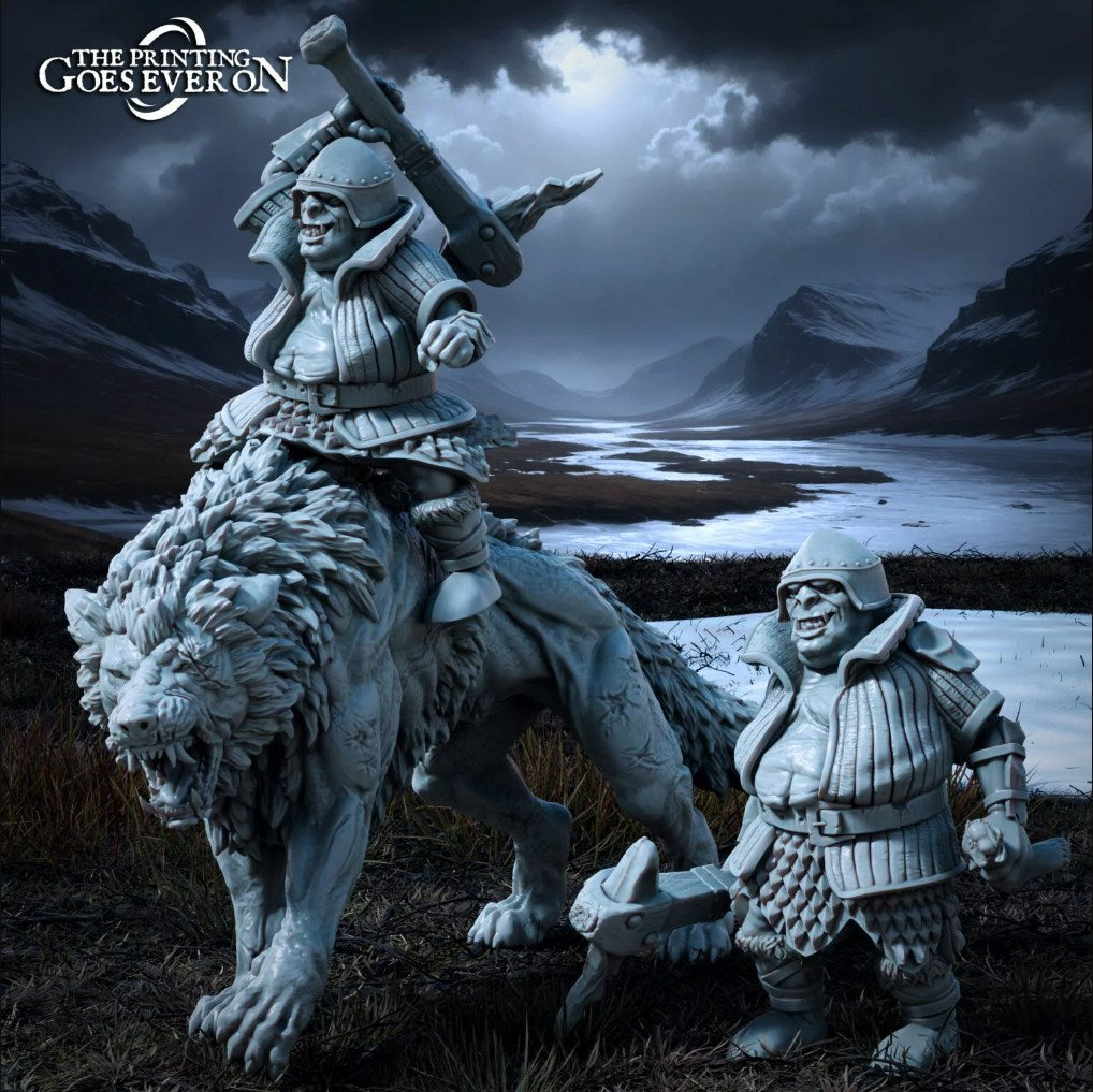 Gormuk the Opulent on foot and mounted printed at 28mm scale in resin, perfect for a certain fantasy setting following 9 adventurers on a quest to destroy a powerful magic ring.