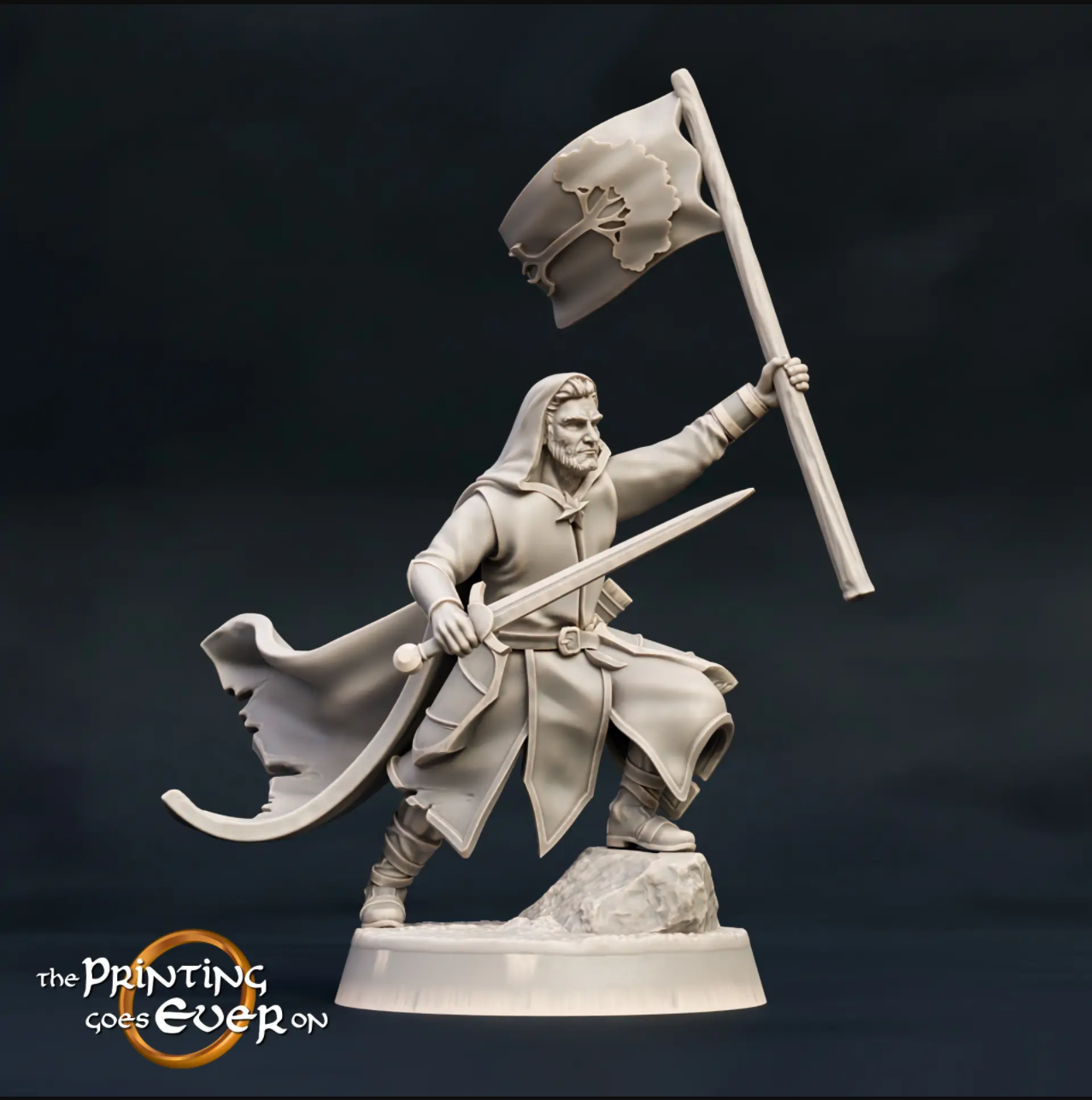 Heathbrant el Capitán Ranger montado y a pie impreso a escala de 28 mm en resina, perfecto para un determinado escenario de fantasía que sigue a 9 aventureros en una búsqueda para destruir un poderoso anillo mágico.