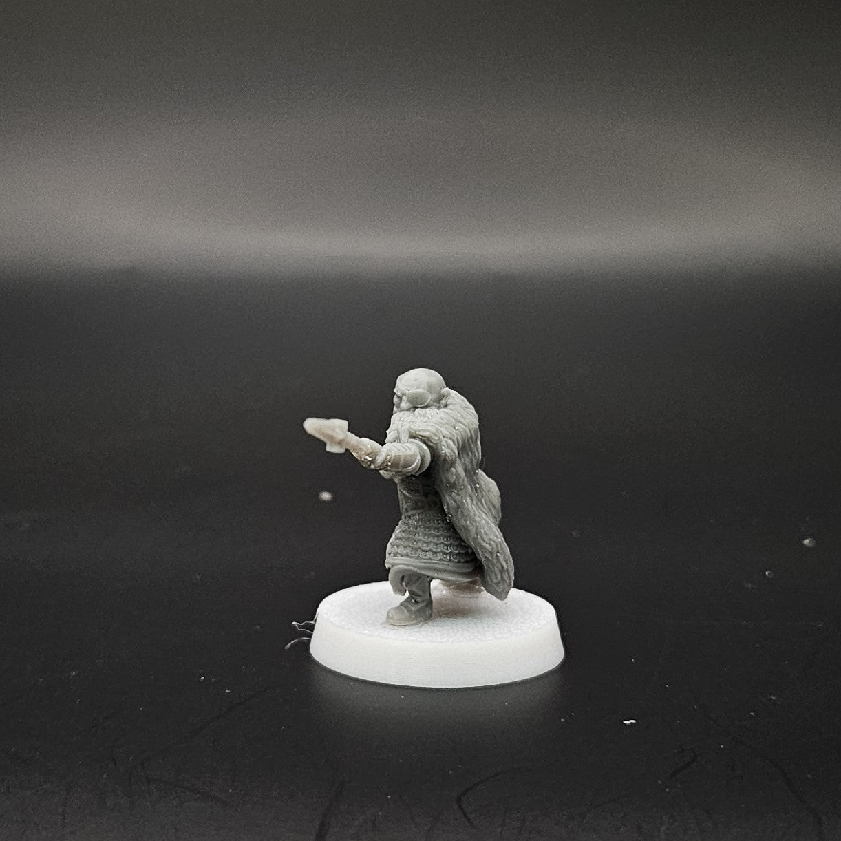Un Rey Enano impreso a escala de 28 mm en resina, perfecto para un determinado escenario de fantasía que sigue a 9 aventureros en una búsqueda para destruir un poderoso anillo mágico.