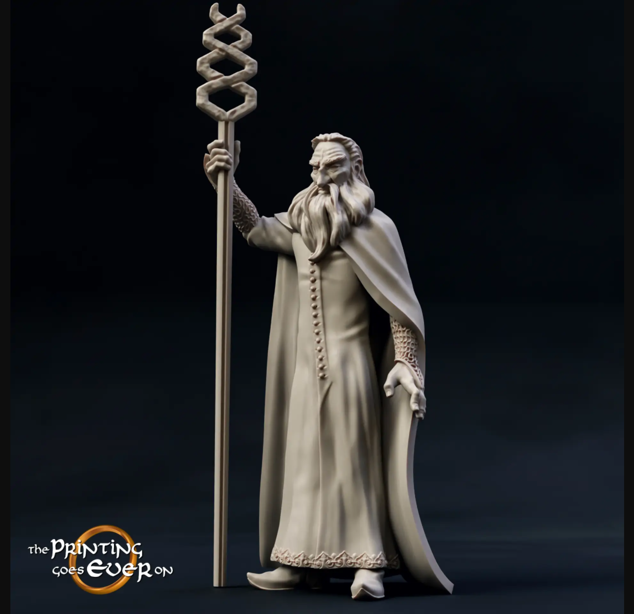 Saligastir a pie y montado con un orbe de visión adicional impreso a escala de 28 mm en resina, perfecto para un determinado escenario de fantasía que sigue a 9 aventureros en una búsqueda para destruir un poderoso anillo mágico.