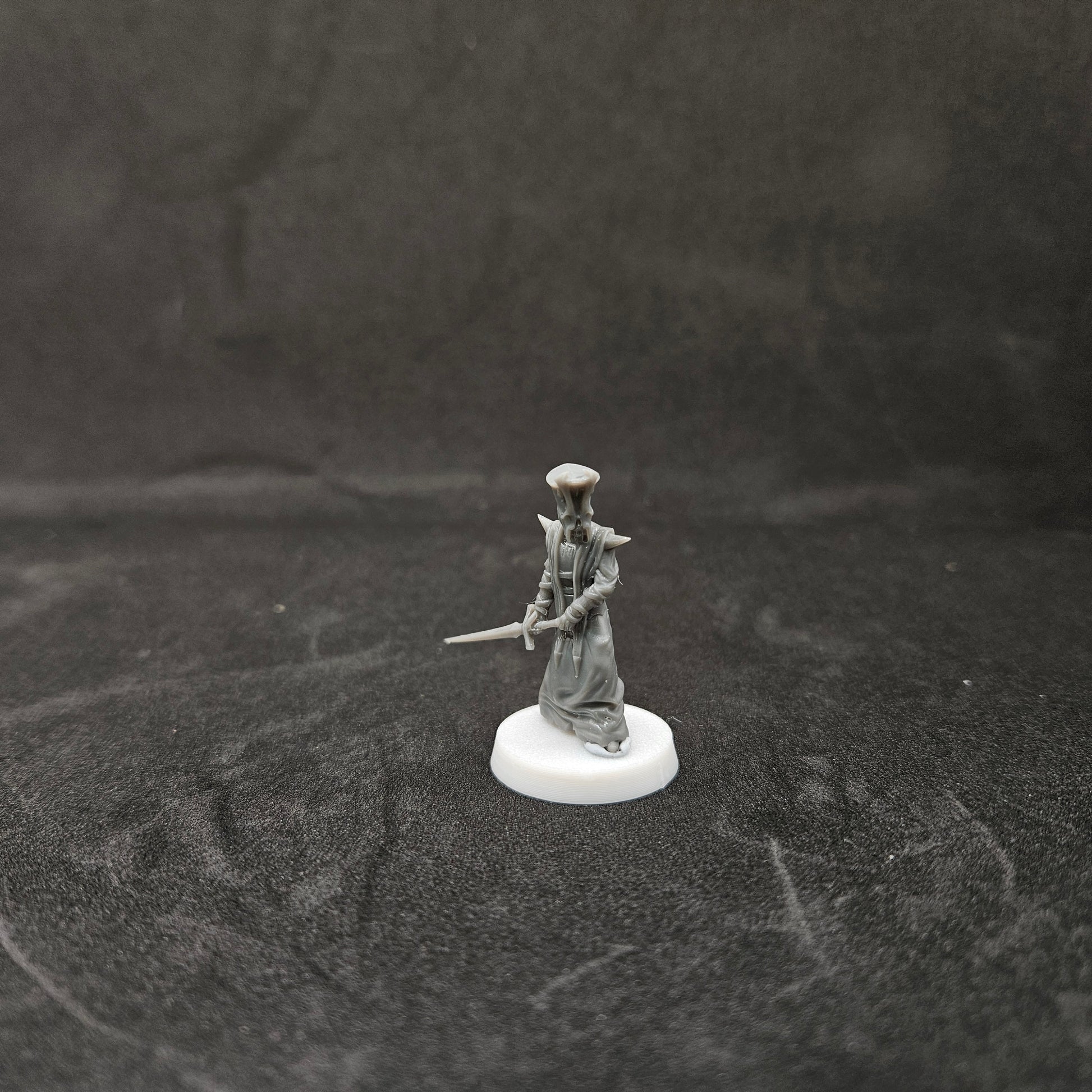 Un Heraldo de las Sombras montado y a pie impreso a escala de 28 mm en resina, perfecto para un determinado escenario de fantasía que sigue a 9 aventureros en una búsqueda para destruir un poderoso anillo mágico.
