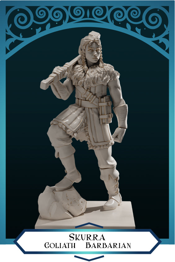 Skurra una mujer Bárbara Goliat impresa a escala 32mm en resina, perfecta para cualquier ambientación RPG de fantasía del DND es un set de miniaturas de mujer.