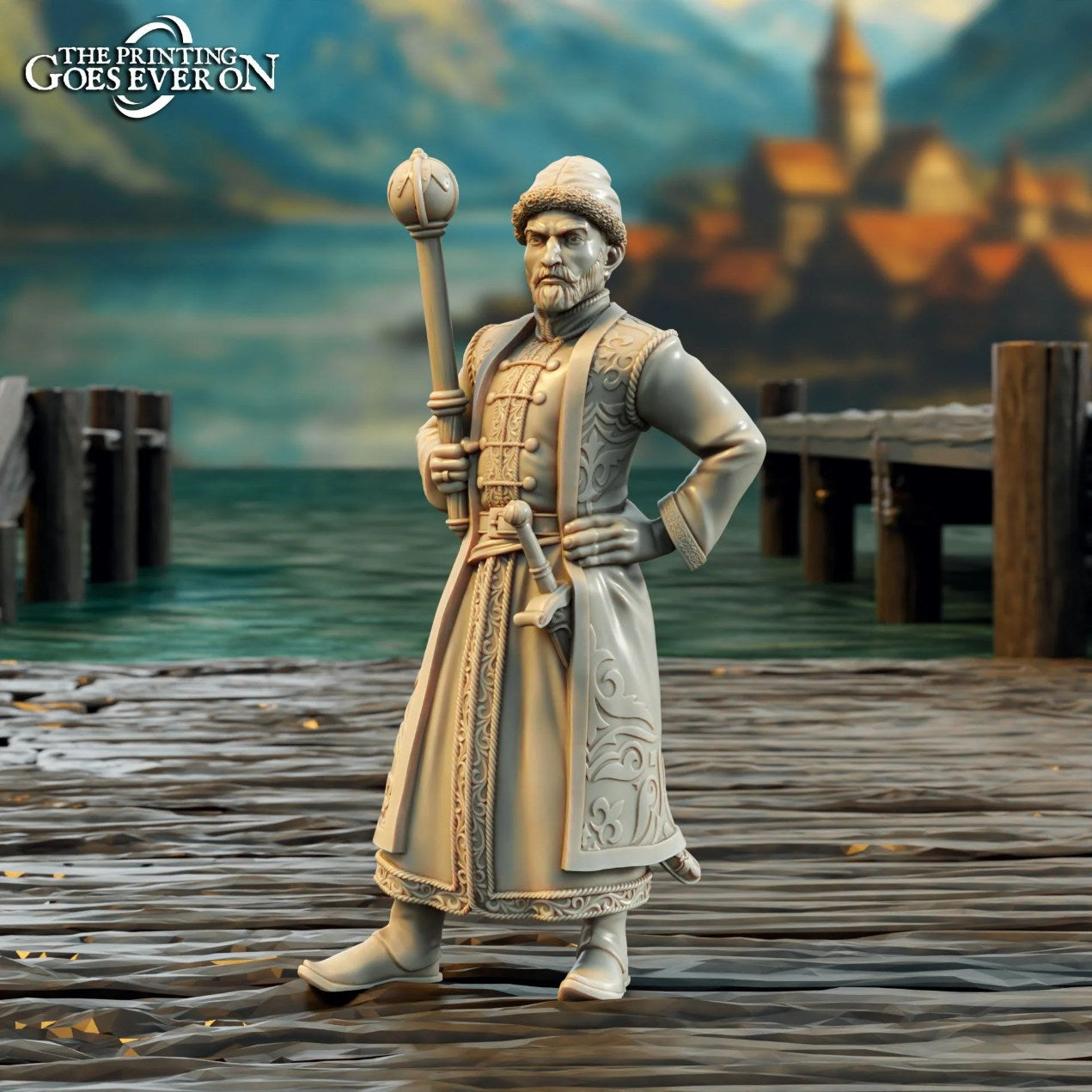 Barazan a pie en 2 poses impreso a escala 28mm en resina, perfecto para una determinada ambientación de fantasía que sigue a 9 aventureros en una búsqueda para destruir un poderoso anillo mágico.
