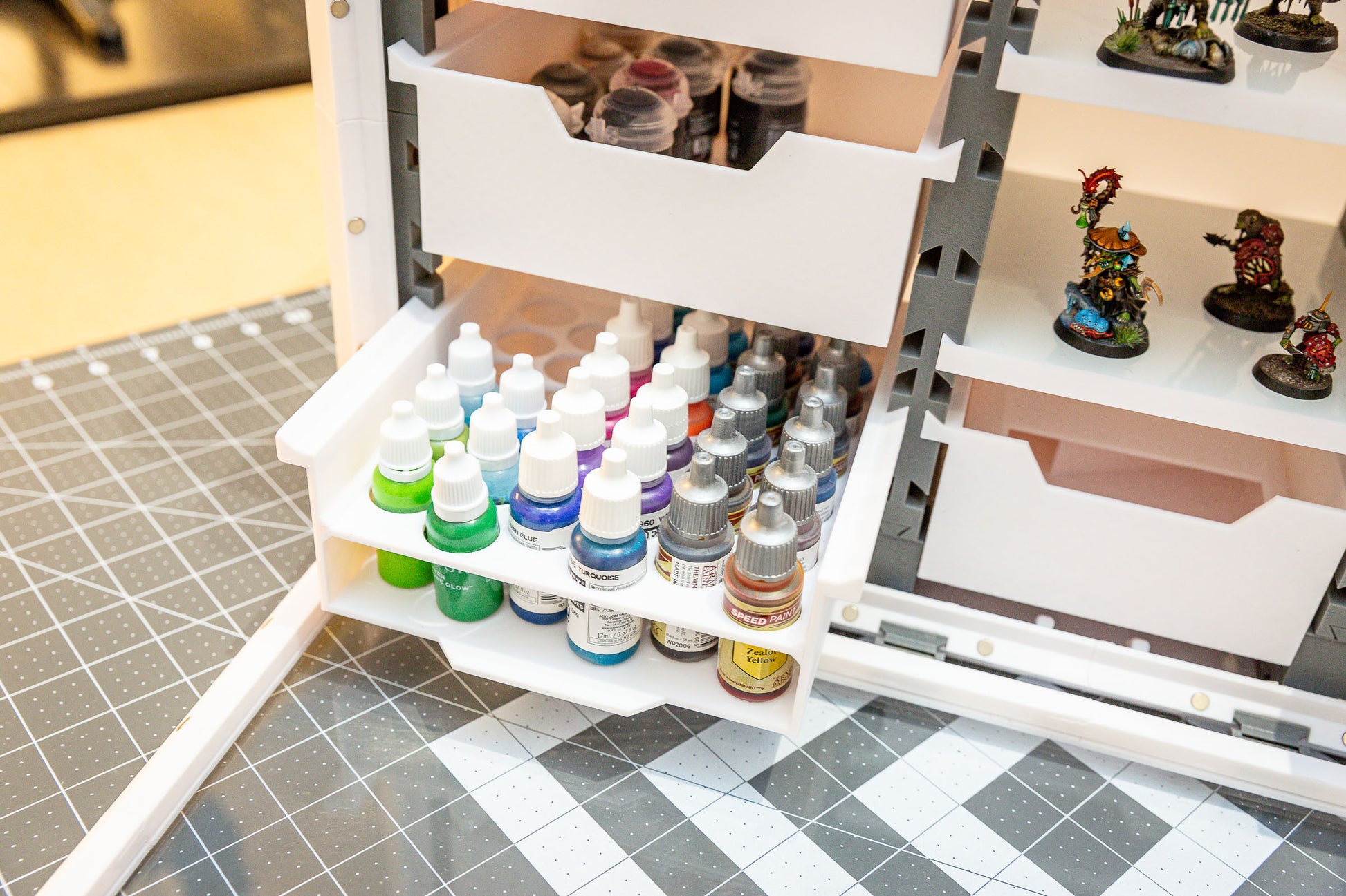 - Customizable Storage Options: Prefer drawers over shelves? Need paints & brushes storage? Or maybe you need boardgame inserts? We’ve got you covered! Easily swap out shelves for drawers to suit your needs. You can also contact us for custom orders through our contact page.