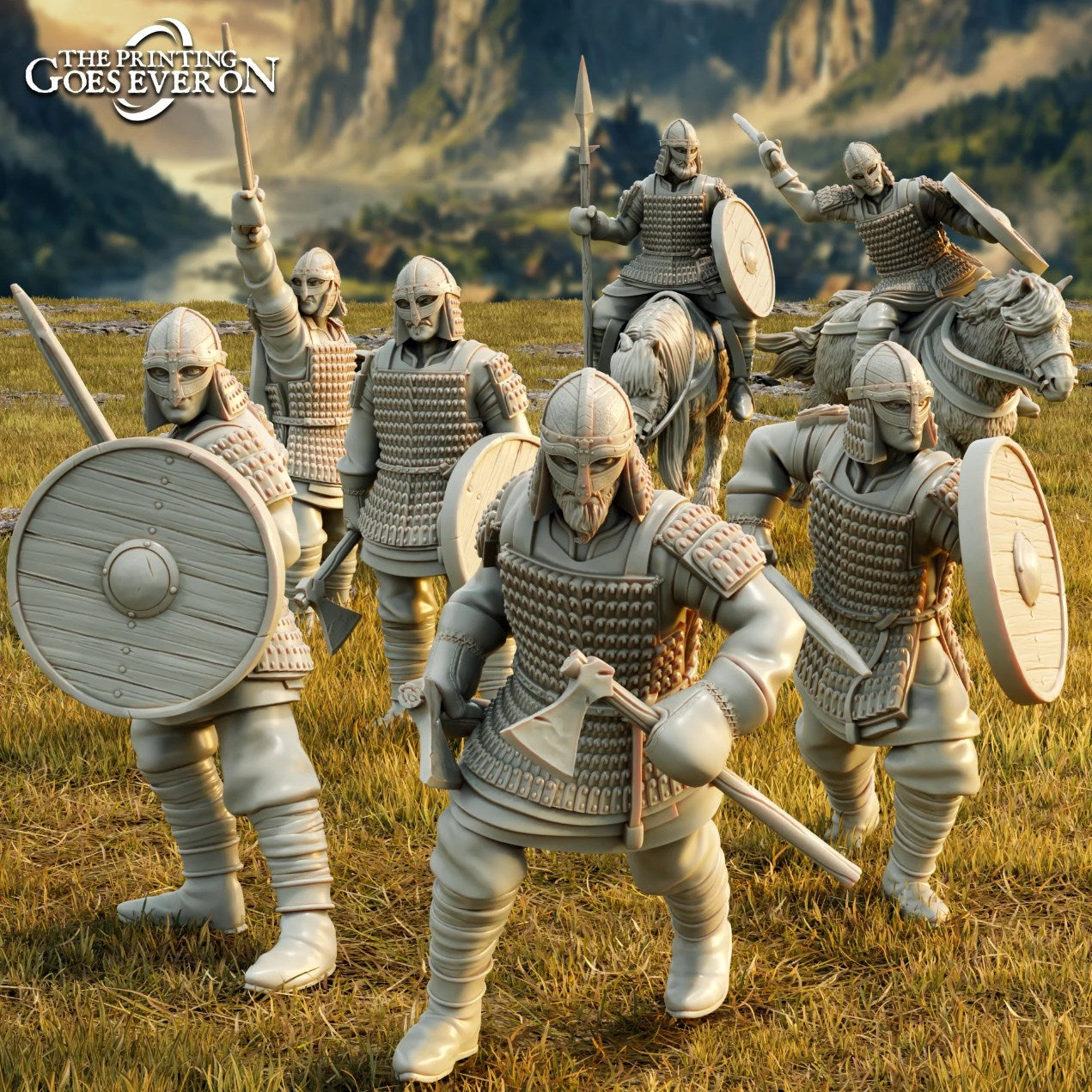 5 Horselord Outrider Scouts impresos a escala de 28 mm en resina, perfectos para un determinado escenario de fantasía que sigue a 9 aventureros en una búsqueda para destruir un poderoso anillo mágico.