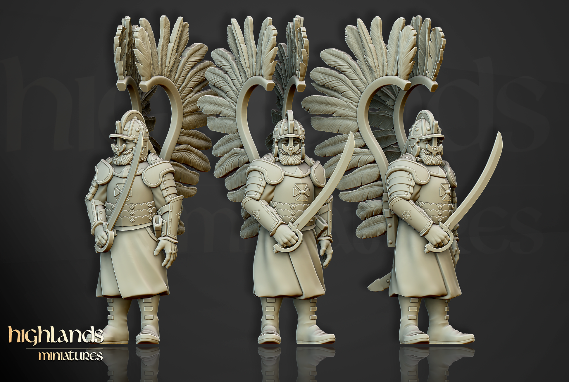 • 10 húsares alados a pie, incluidos un capitán y un músico